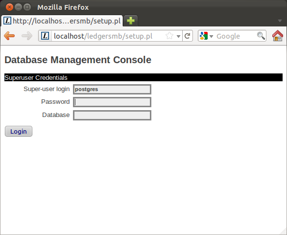 Now we enter the Login screen of LedgerSMB