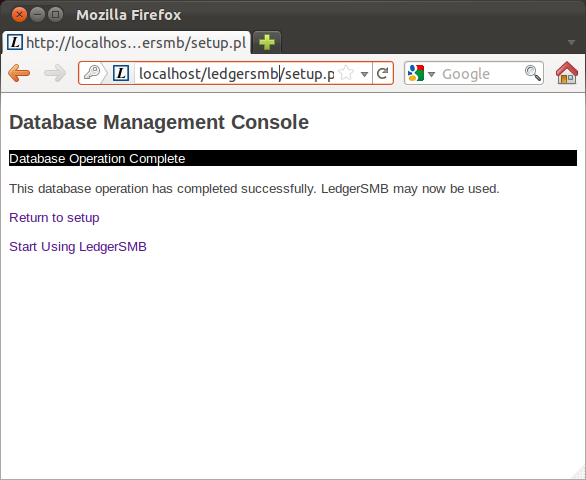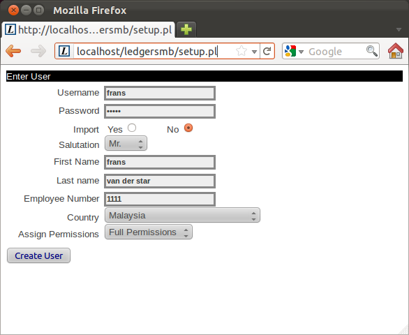 Now we create ledgersmb database who has full rights on the database with user ledgersmb: